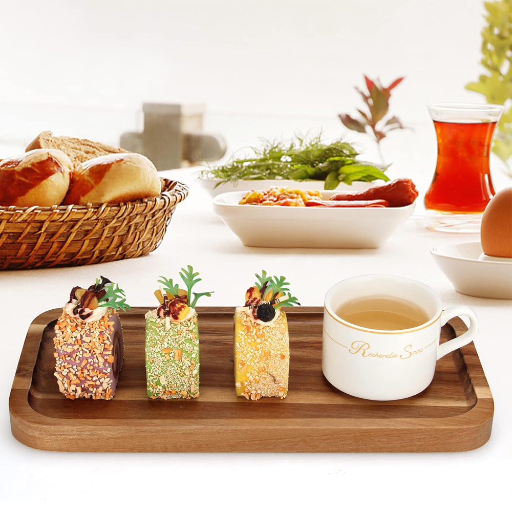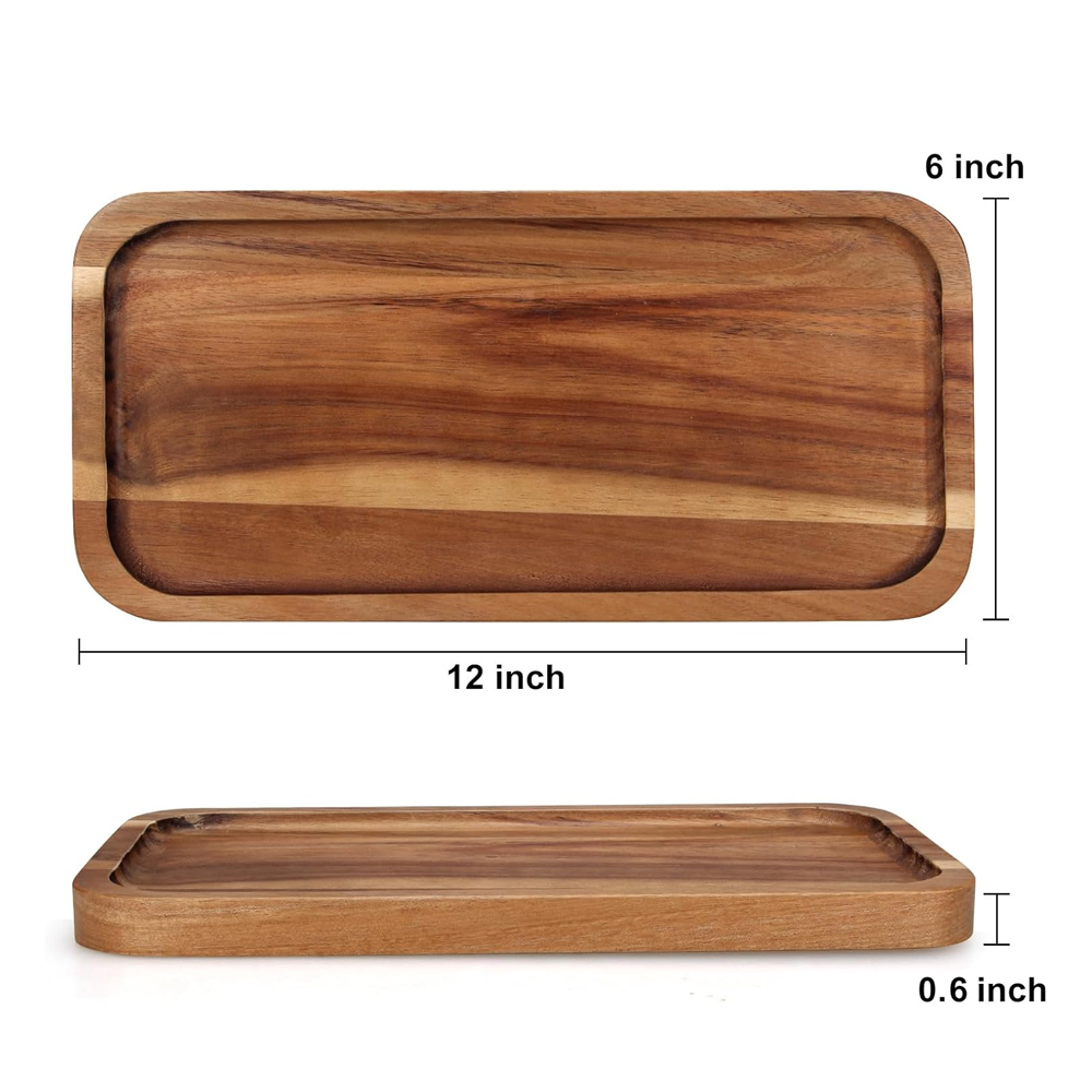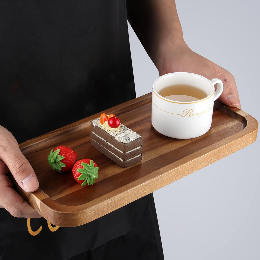 Stunning & Durable Acacia Wood: Known for its hardness and unique, rich grain patterns, acacia wood is naturally resistant to moisture and scratches. These trays are built to last and will beautify with age, developing a lovely patina.