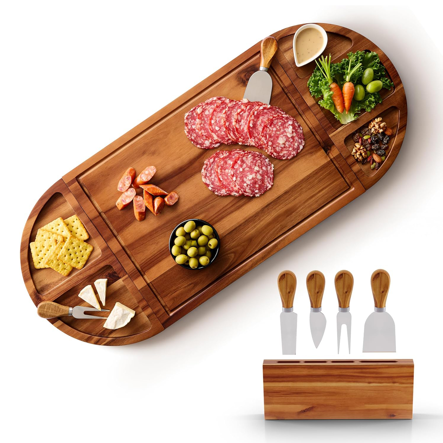 Complete All-in-One Set: Includes 4 dedicated serving knives, ensuring you have the right tool for soft cheese, hard cheese, and spreading. Everything you need is right in the box, ready for your party.