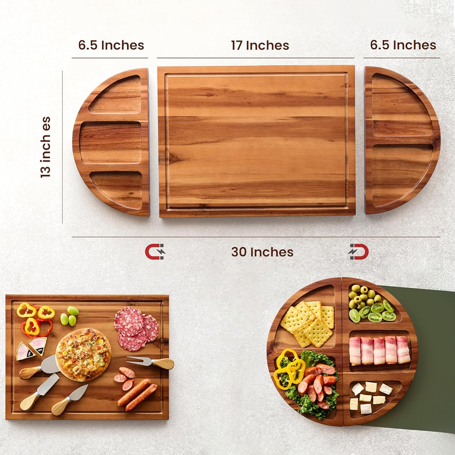 Smart 3-Part Segmented Design: The built-in dividers create natural sections for organizing different types of food—perfect for separating cheeses from cured meats, sweet from savory, or simply creating a visually appealing and structured presentation.