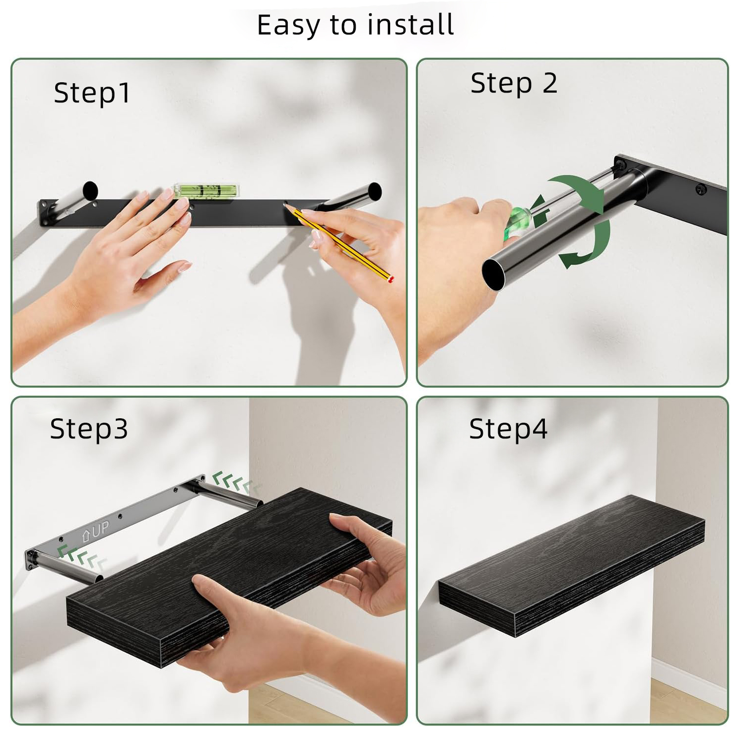 Easy Wall-Mounted Installation: The floating design not only looks modern and clean but also makes floor cleaning a breeze. Each shelf includes discreet mounting hardware for a secure and straightforward setup.