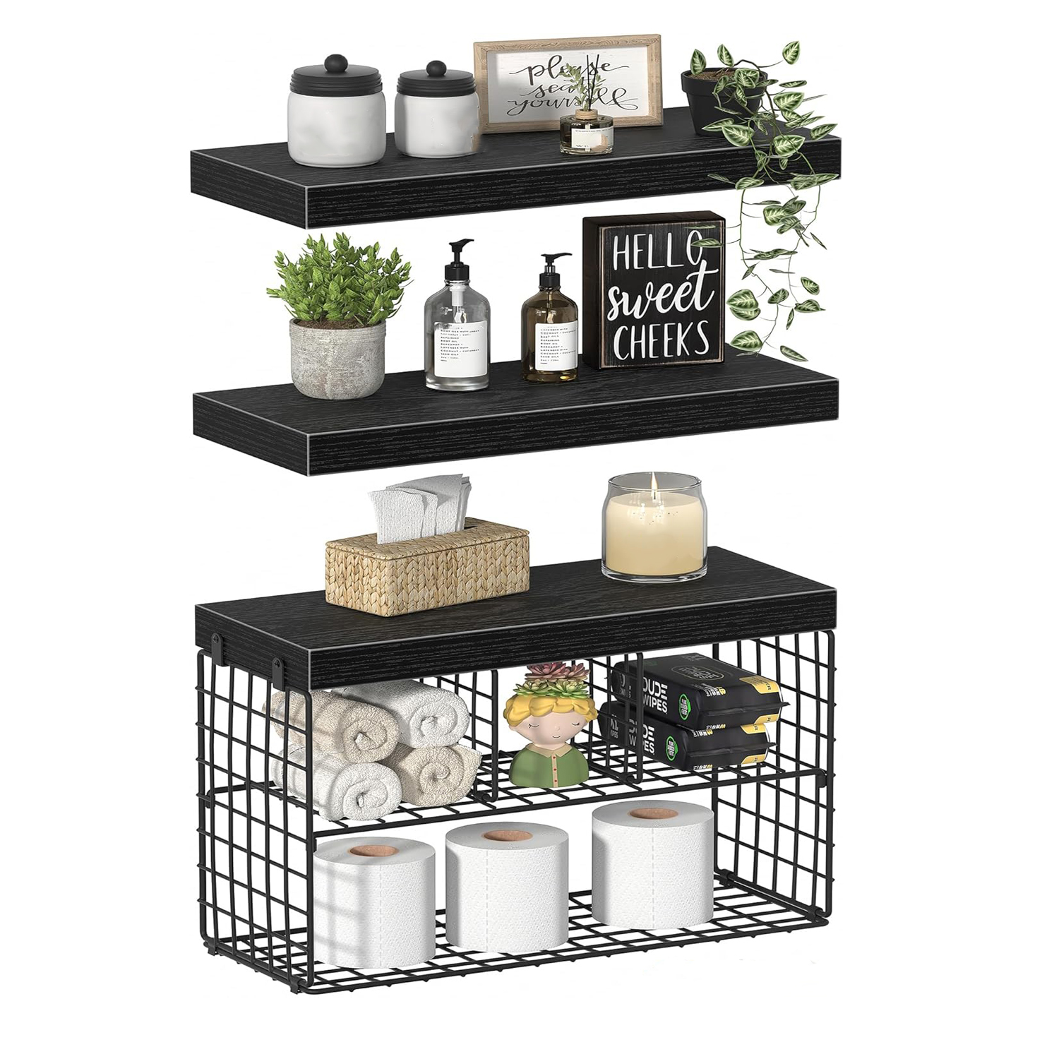 This set is the ultimate tool for small-space living. It helps you conquer clutter vertically, turning a blank wall into your bathroom’s most functional and charming feature.