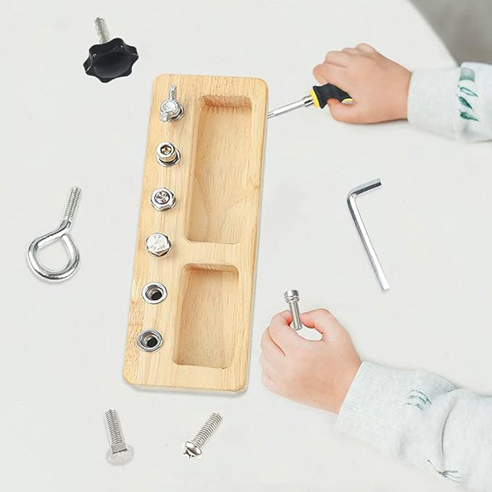 Develops Fine Motor Skills: Screwing and unscrewing the bolts strengthens the small hand muscles crucial for writing, buttoning clothes, and using utensils.