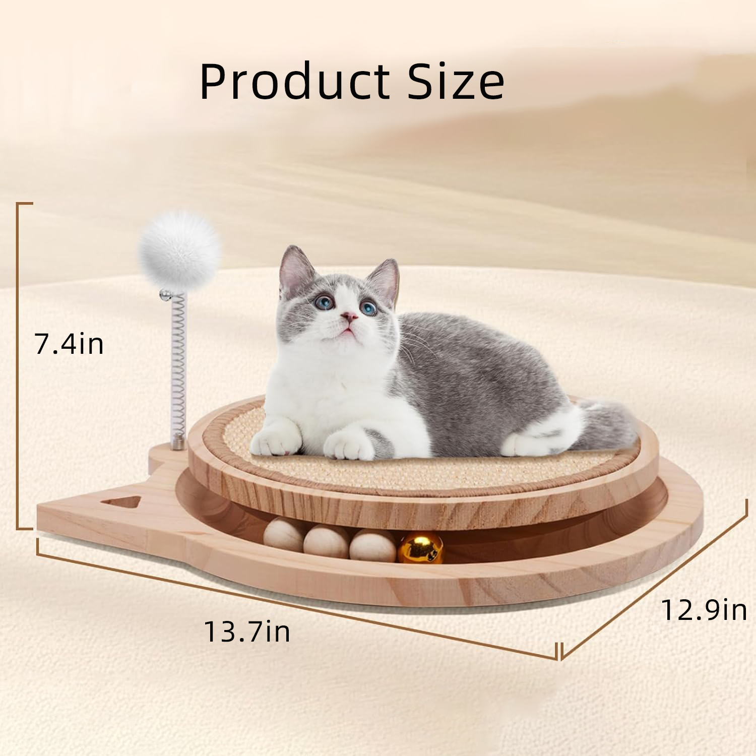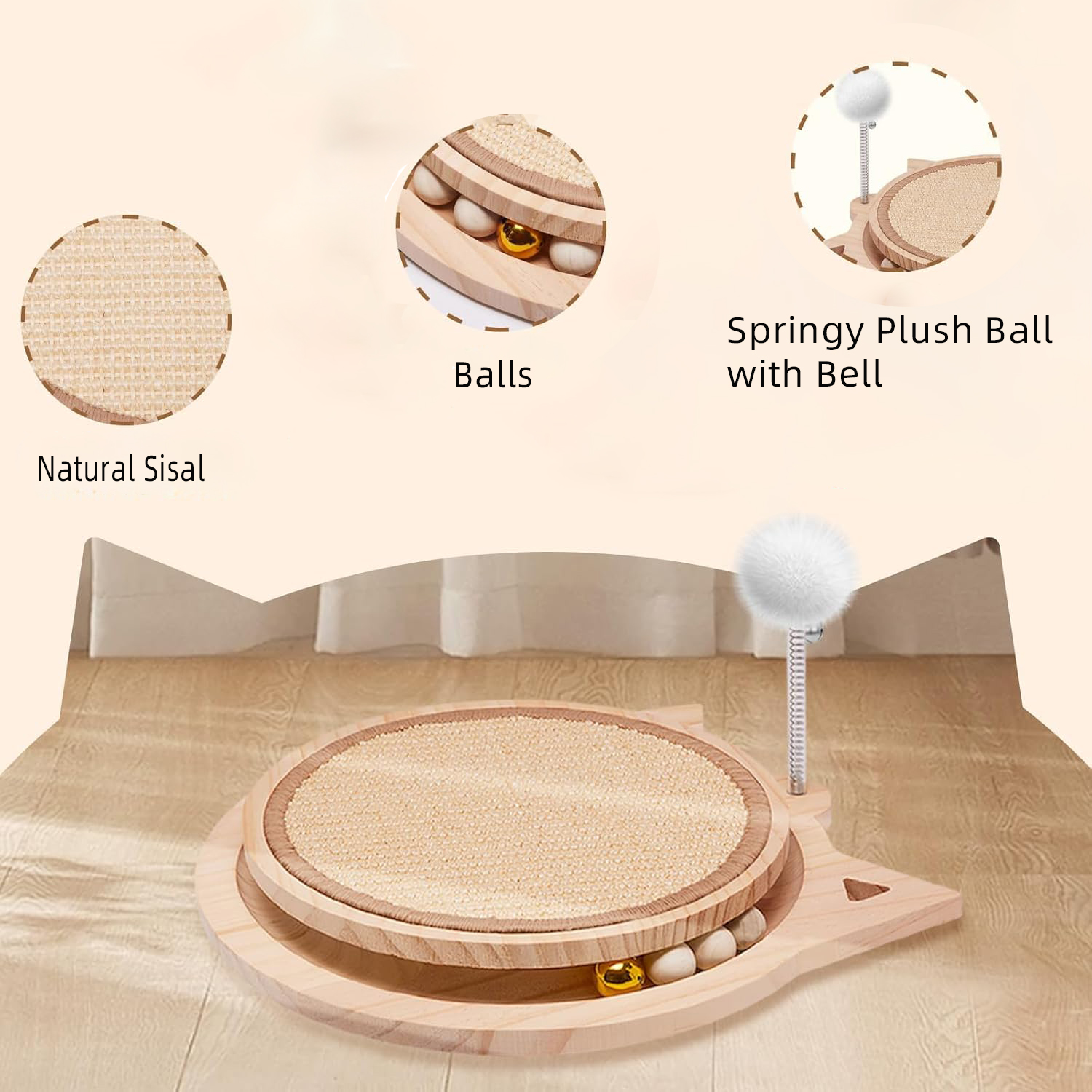 Natural Sisal Cat Scratcher, Round Cat Toys for Indoor Cats Interactive Toys with Ball Track Spring Ball