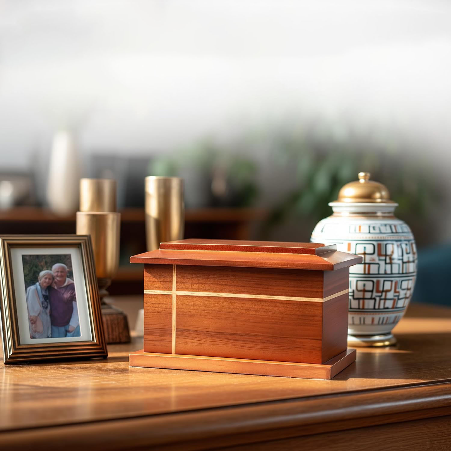 Differentiated 2-in-1 Design: This set includes a primary urn and a matching inner keepsake tin. This versatile design addresses multiple customer needs in one SKU, creating opportunities for upselling and enhancing the overall value proposition.