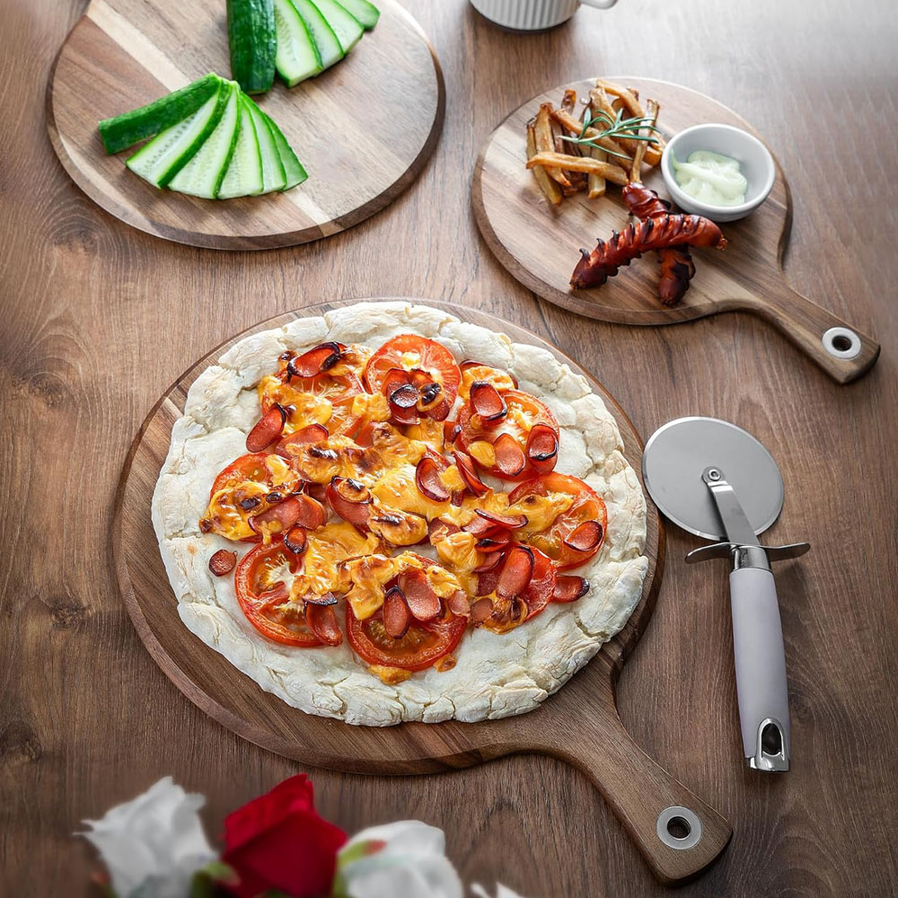The All-in-One Entertaining Solution: Go seamlessly from kitchen to table. Use them as charcuterie boards, cheese plates, pizza servers, or appetizer platters. Their warm, natural look makes any food presentation instantly more appealing.