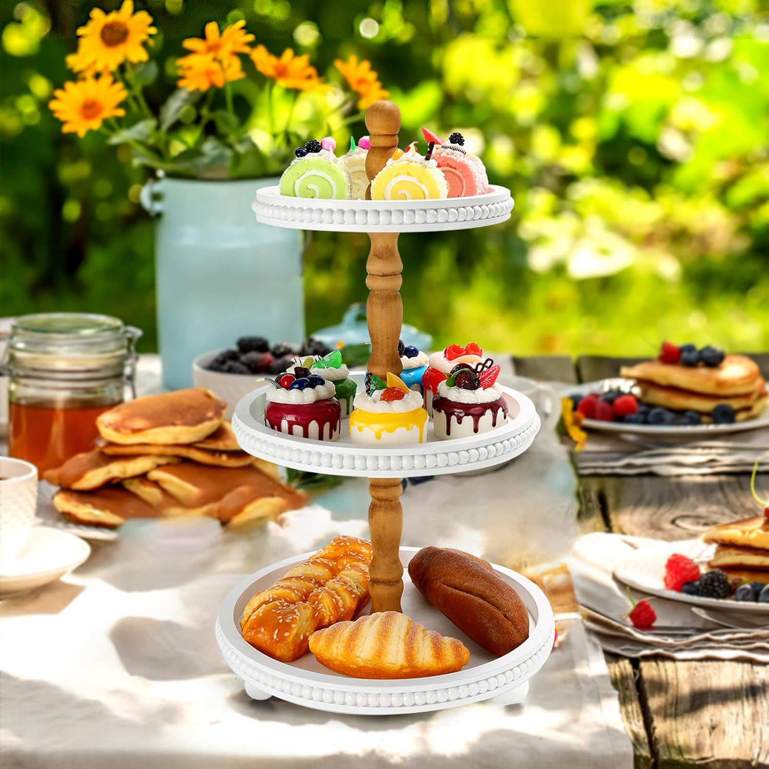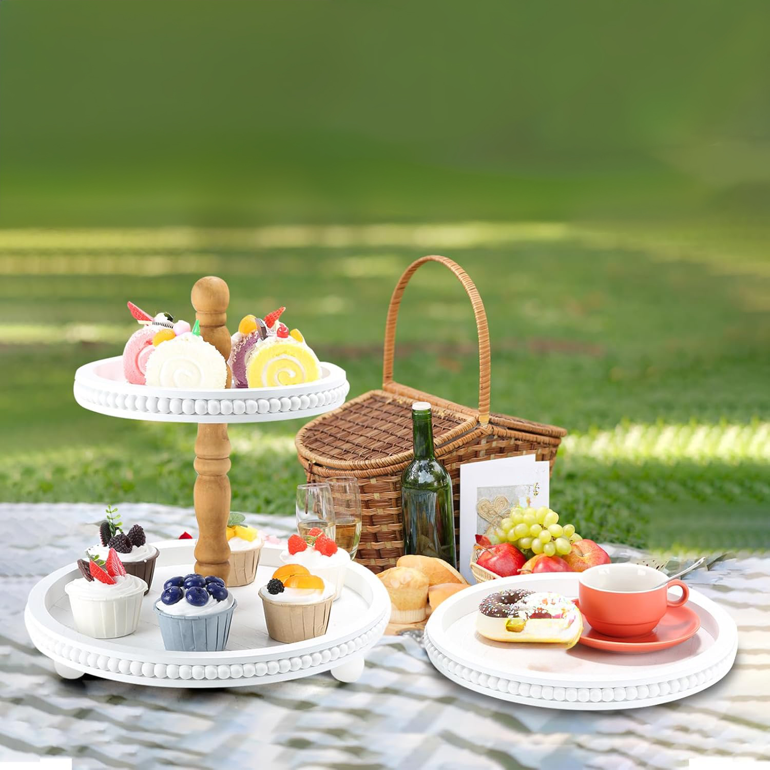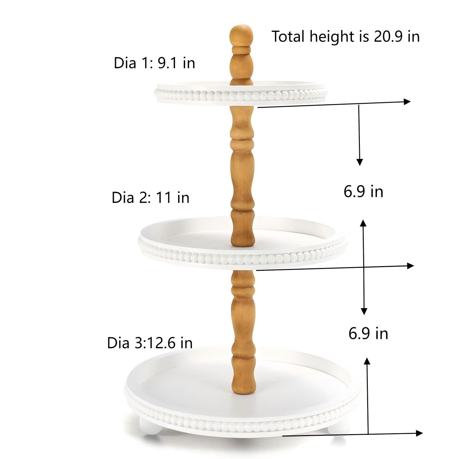 Discover the perfect blend of form and function with our White Farmhouse Tiered Tray Stand. This beautifully crafted piece is designed to transform any corner of your home into a stylish display, from your morning coffee nook to your holiday dessert table. Its crisp white finish and rounded tiers bring a light, airy feel to the classic rustic aesthetic.