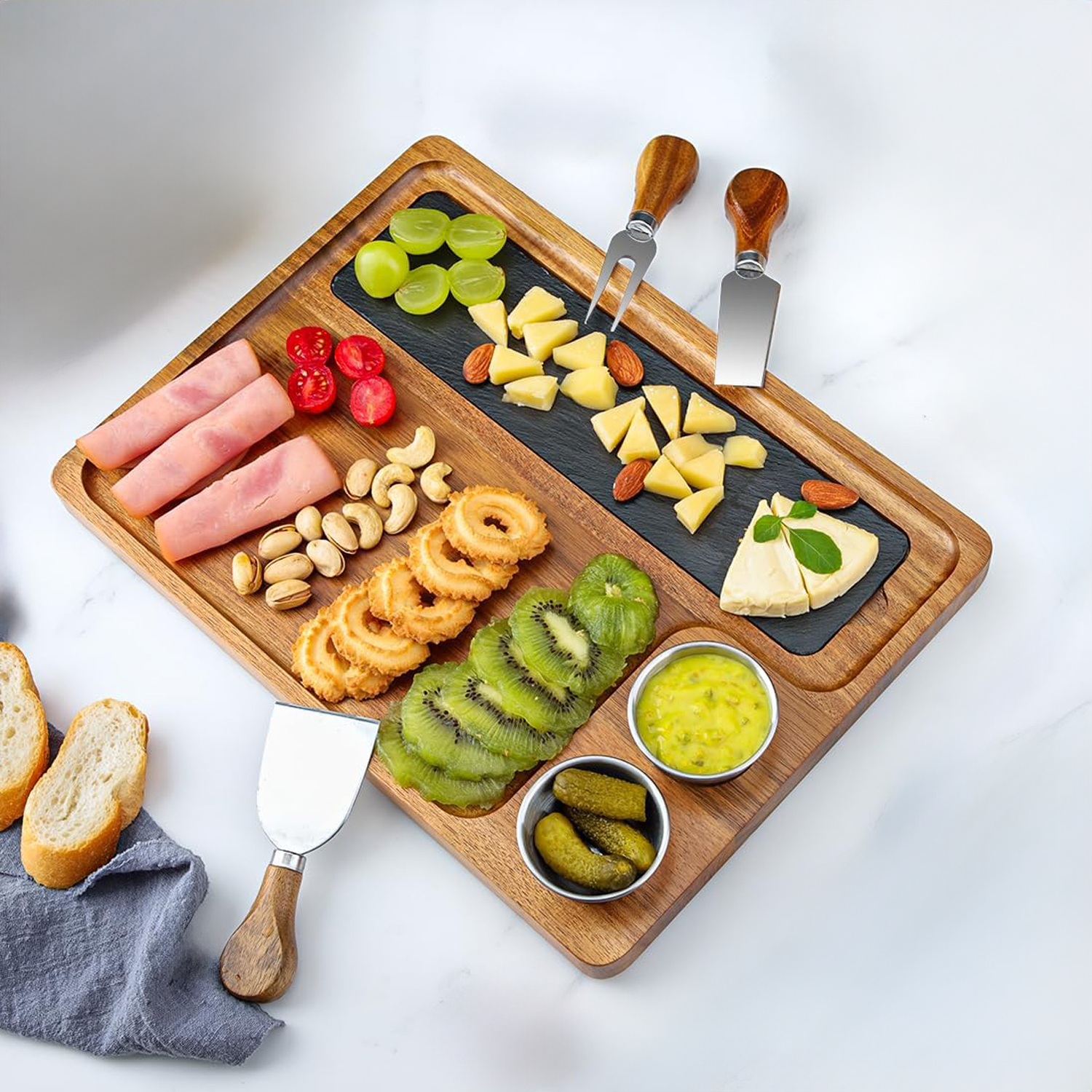 Elevate your gatherings from simple snacks to memorable experiences. This isn’t just a board; it’s a complete serving solution designed to help you create stunning, organized, and Instagram-worthy spreads that spark joy and conversation among your guests.